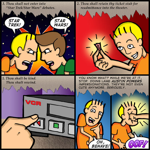 So as you can see, I’ve rounded out the last four of the Ten Commandments of Movie Watching. I know there was some anticipation out there waiting to see where it ended up. I hope you aren’t disappointed. If anything, I hope you enjoyed getting an extra comic on Tuesday. Keep checking the site. You’ll get another extra comic tomorrow.
