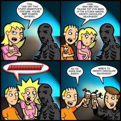 As for today’s comic? I can’t tell you what inspired it. I suppose part of me really, REALLY wanted to draw a strip with a Dementor in it. Watching Harry Potter and The Prisoner of Azkaban on Friday, I was very taken with their design and wanted to re-create it.