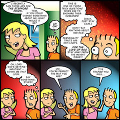 Having some fun with The Stepford Wives today, but what if the shoe was on the other foot? Vote for Theater Hopper at buzzComix to uncover our more recent incentive sketch – The Stepford HUSBANDS!