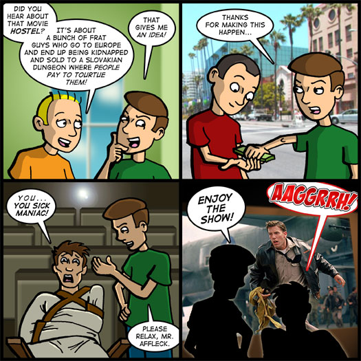 It's about a bunch of frat guys who go to Europe and end up being kidnapped and sold to a Slovakian dungeon where people pay to torture them!