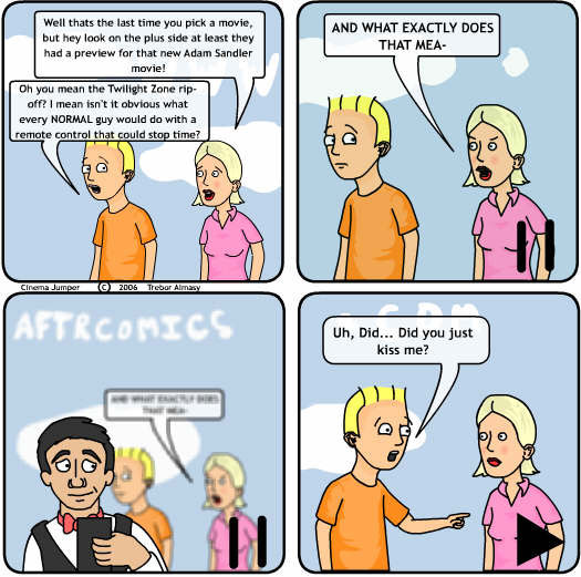 Oh you mean the Twilight Zone rip-ff? I mean isn't it ovious what every NORMAL guy would do with a remote control that could stop time?