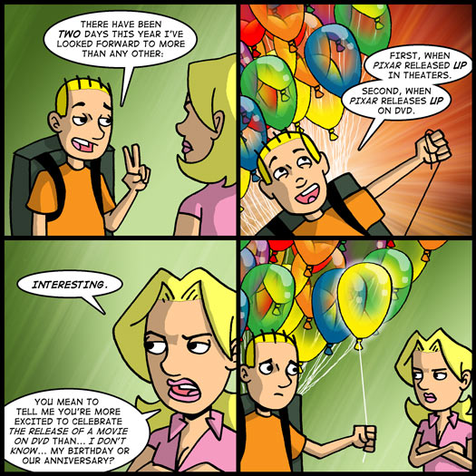 Second, when Pixar releases Up on DVD.