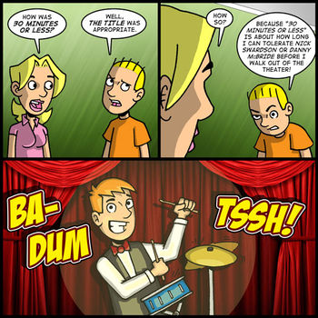 There was another version of this comic that I think was a little more pedestrian. In the original version, it was going to be Charlie asking Cami to see Our Idiot Brother with her. Cami abstains, telling Charlie she can save $8.00 and watch Tom do something stupid instead. Cut to Tom looking down the barrel of a shotgun for a Cheeto he dropped, or something. Maybe it would have been funnier. The world will never know.