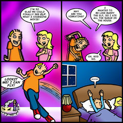 So as the strip indicates, I finally got around to seeing Elf on Monday night. I really enjoyed it, too. A lot of the funniest bits were used up in the trailers and television commercials, but curiously, I didn’t care. Will Ferrell is such a joy to watch, it never even fazed me.