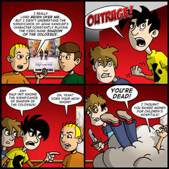 I suppose I can’t say that I’ve gone completely without referencing Penny Arcade in the past. I borrowed Div for a couple of strips where I was lampooning the trend of anthropomorphic appliances. At any rate, it’s all in good fun. If anyone takes exception to my characterization of Gabe and Tycho as violent hooligans, I don’t think they’ll mind if Monday’s Penny Arcade is any indication.