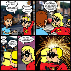Was it silly of Cami to refuse that woman’s reward? Probably not. But it sure would have come in handy when Tom and Cami wanted to grab a bite to eat later! If you want to see what I’m talking about, just vote for Theater Hopper at buzzComix to see the special incentive sketch.
