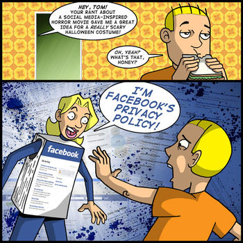 I guess as I thought more and more about a horror movie with social media elements, I figured that there had to be some kind of boogeyman to really stoke audience’s fears. Y’know, like Jason Vorhees or Freddy Krueger. Facebook’s Privacy Policy seemed as logical a choice as any to depict the embodiment of walking evil. So, there you go.