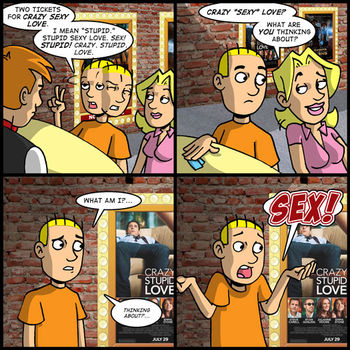 One movie I DID see this weekend was Crazy Stupid Love. And the exchange in today’s comic was 100% for real. That’s right. I actually walked up to the ticket booth and asked for two tickets for “Crazy SEXY Love.” Which, when you think about it, kind of sounds like a 1960’s comedy starring Michael Caine.