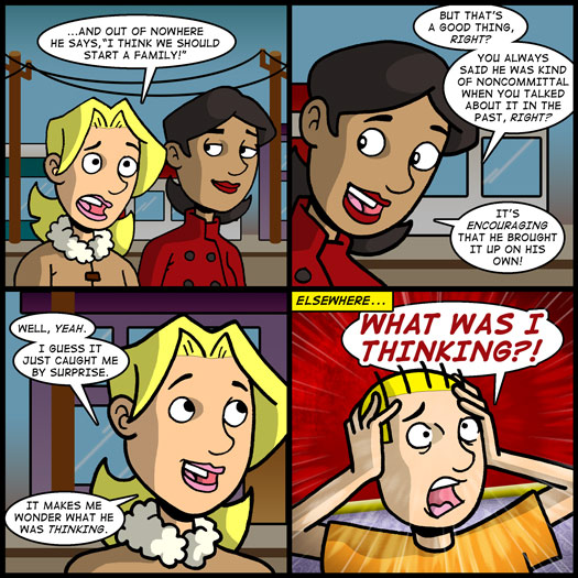 That said, I knew what this week’s comic was going to be about a week ago. I probably should have had it in the can earlier so I could have posted regardless of whether or not I had a migraine. But I’ve been working without a buffer for this long. It’s kind of hard to change my stripes now.