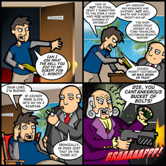 Don’t panic just yet, kiddies. While it’s true I’ll be away on vacation, I’ll leave you in capable hands. I have some guest strips lined up. One of them in the bag is a comic by none other than Instant Classic’s creator Brian Carroll. It’s another I, Robot joke, but it’s a good one.