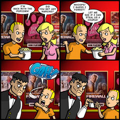 Every once in a while, I like to try and spin a strip with as little dialogue as possible. I think this fits the bill. Tom playing off his incarceration as a mix-up when he was clearly about to break the rules regarding theater hopping is a fun stroke of casual denial. Victor wordless reply felt right.