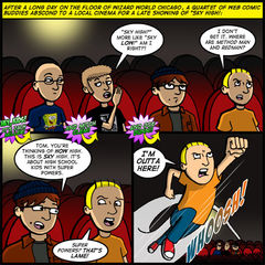 This isn’t the first time Tom has taken flight. It isn’t the first time he’s seen a movie with his web comic contemporaries, either. But as I place great importance on tradition, so goes today’s strip.